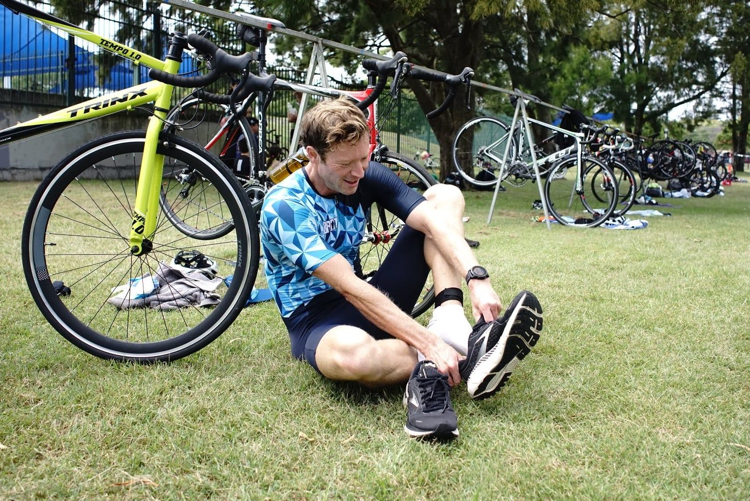 Never sit down in transition. Photo credit: Robbie Parton